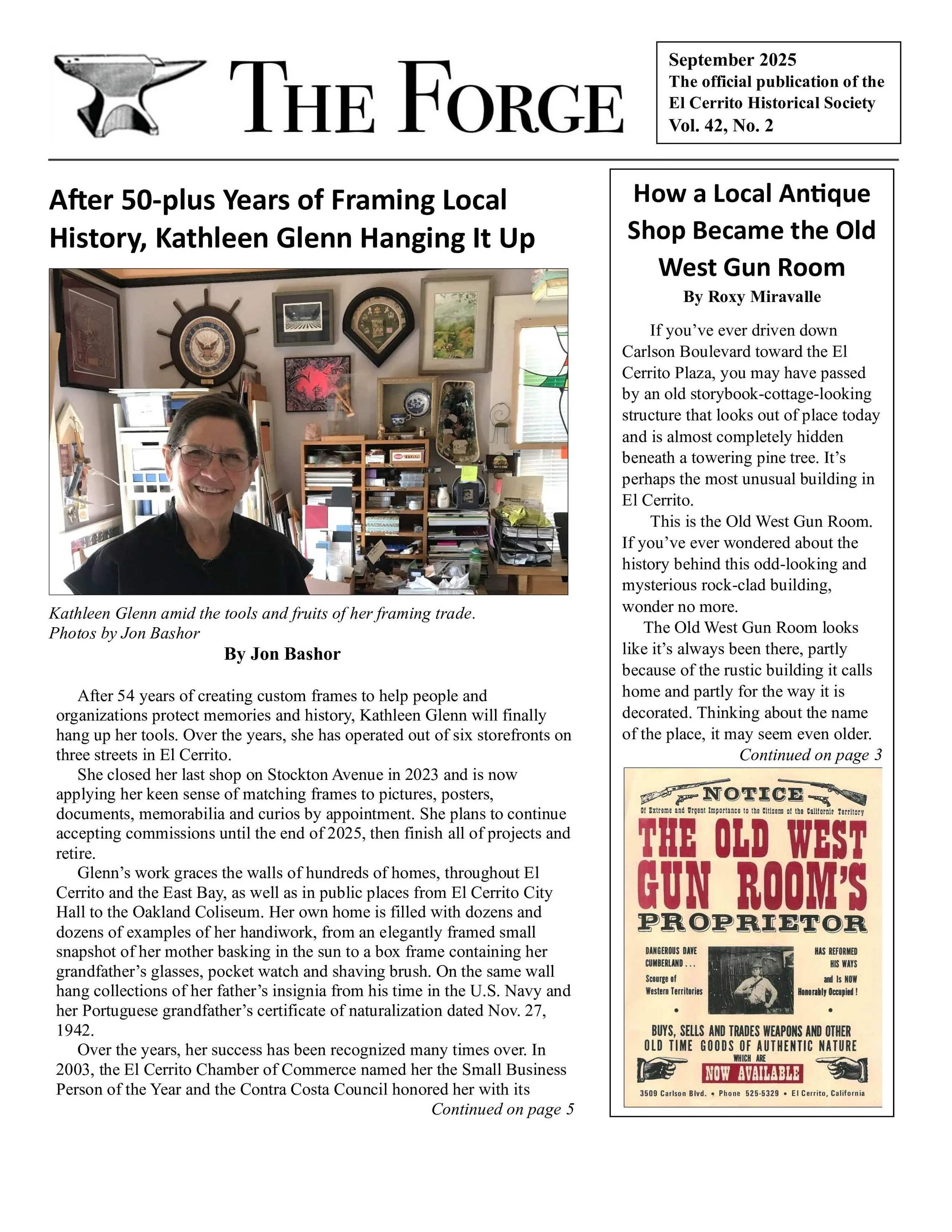 Dues-paying members of the El Cerrito Historical Society receive our quarterly newsletter, The Forge, by mail. The Forge contains original content researched and written by society members and other contributors.