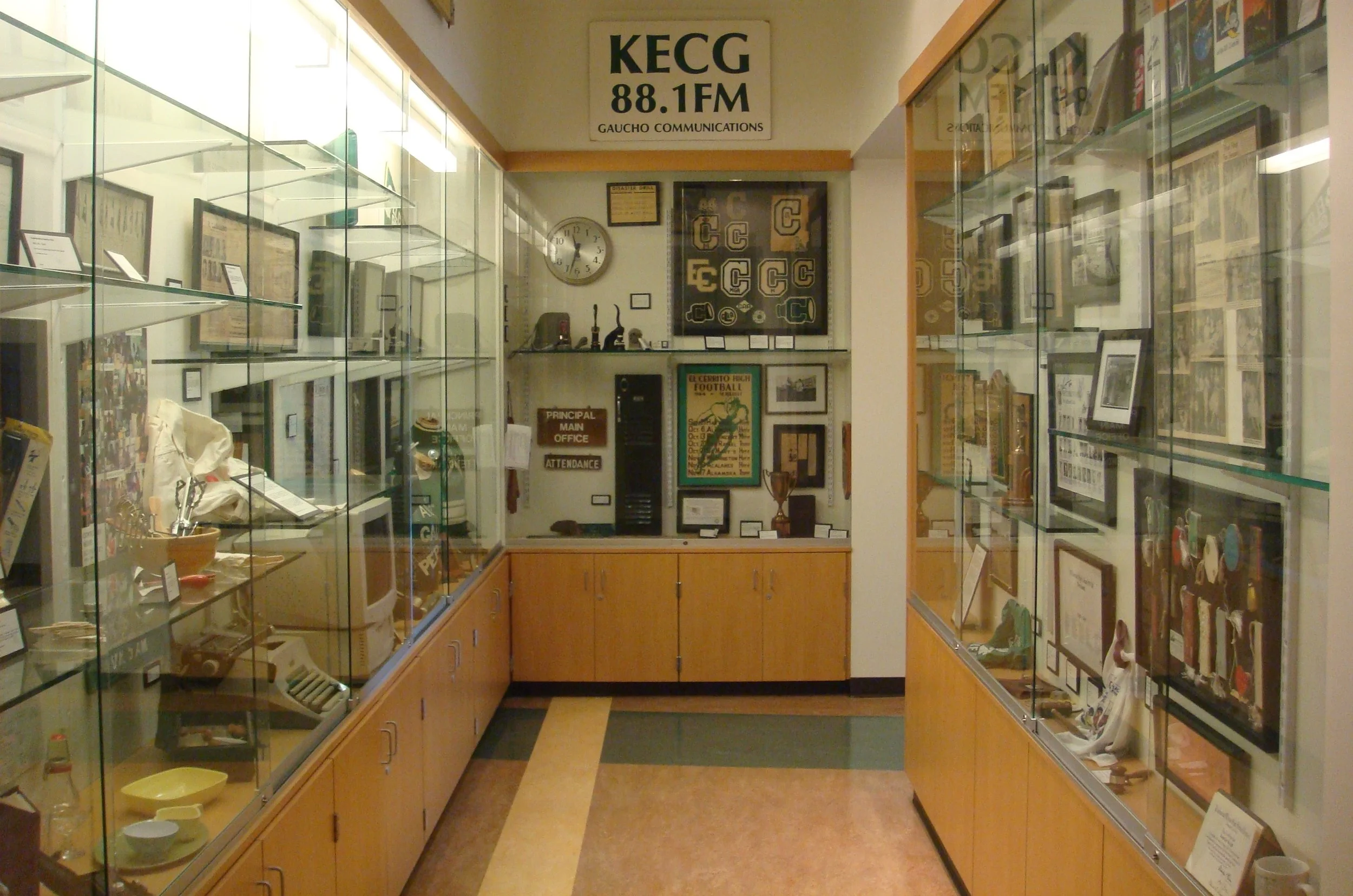 Also during this time, Glenn stored some of the historic items removed from El Cerrito High School when the old buildings were razed in 2005 to make way for the new school. When it reopened in 2008 with a dedicated museum space and sports hall of fame, Glenn framed the photos, ephemera donated objects for display.